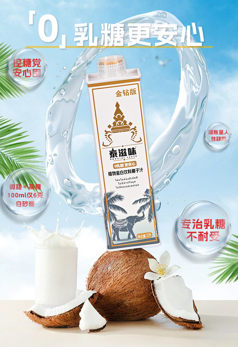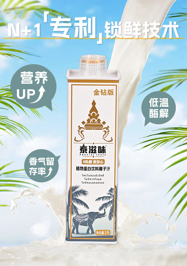 • 1L泰式鲜榨椰子汁泰国风味网红大瓶饮料整箱植物蛋白饮料代理合作